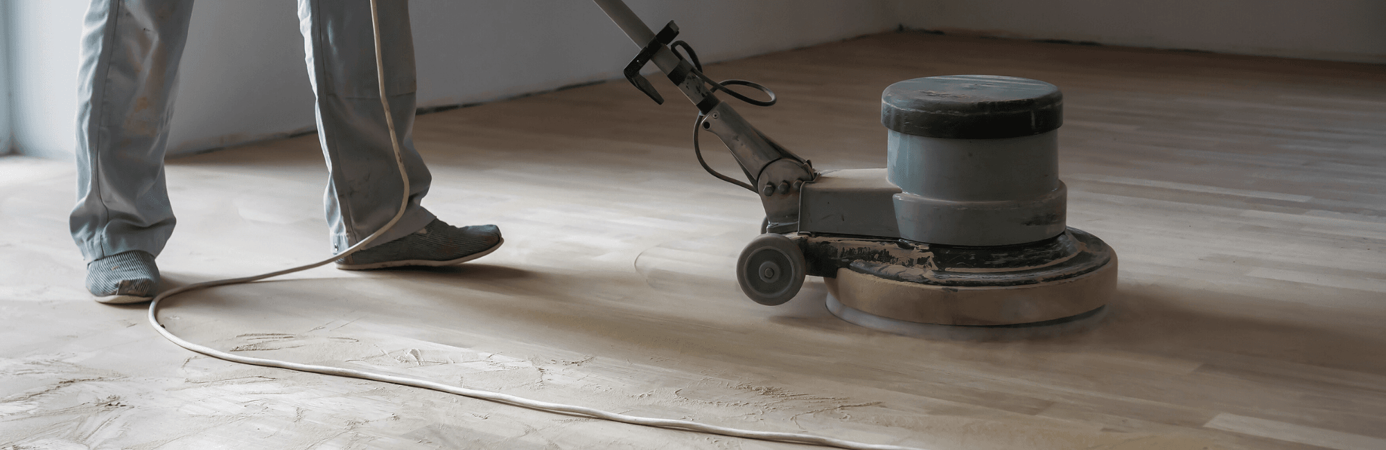 The floor is sanded down with coarse sand paper on the sander until there is a new floor level or the old finish is removed. After sanding the area is filled to eliminate cracks and nail holes and then sanded several more times with finer sand paper. After the sanding process the stain and finishing process will take place and our experts will help guide you in picking out the best options for this.